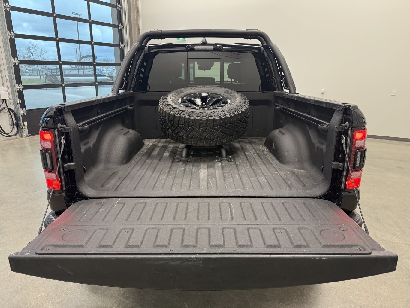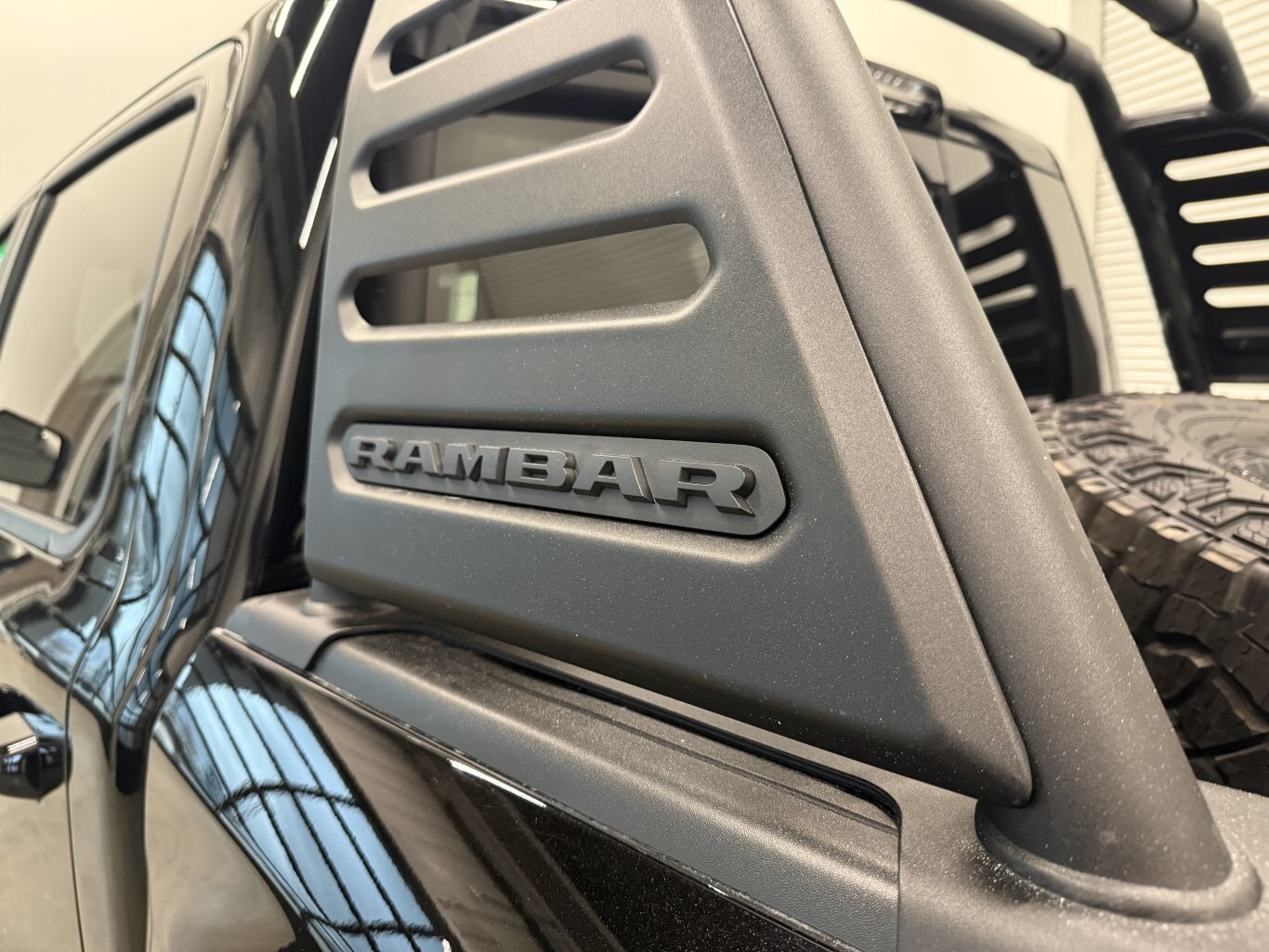 - Mopar off-road style running boards, RamBar front grille guard, bed-mounted tire carrier for spare-no-expense readiness